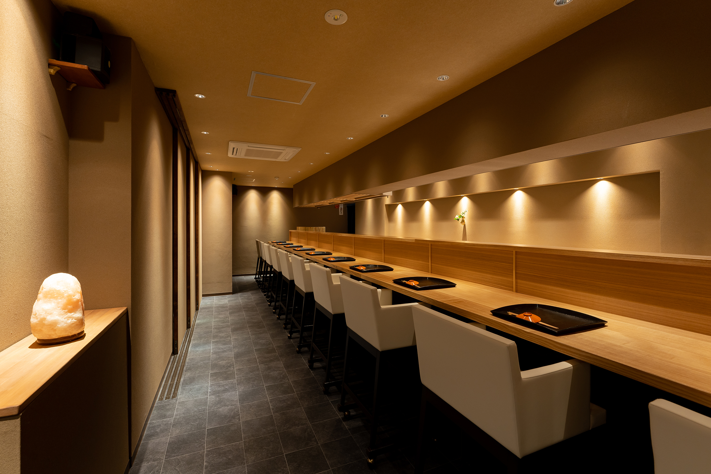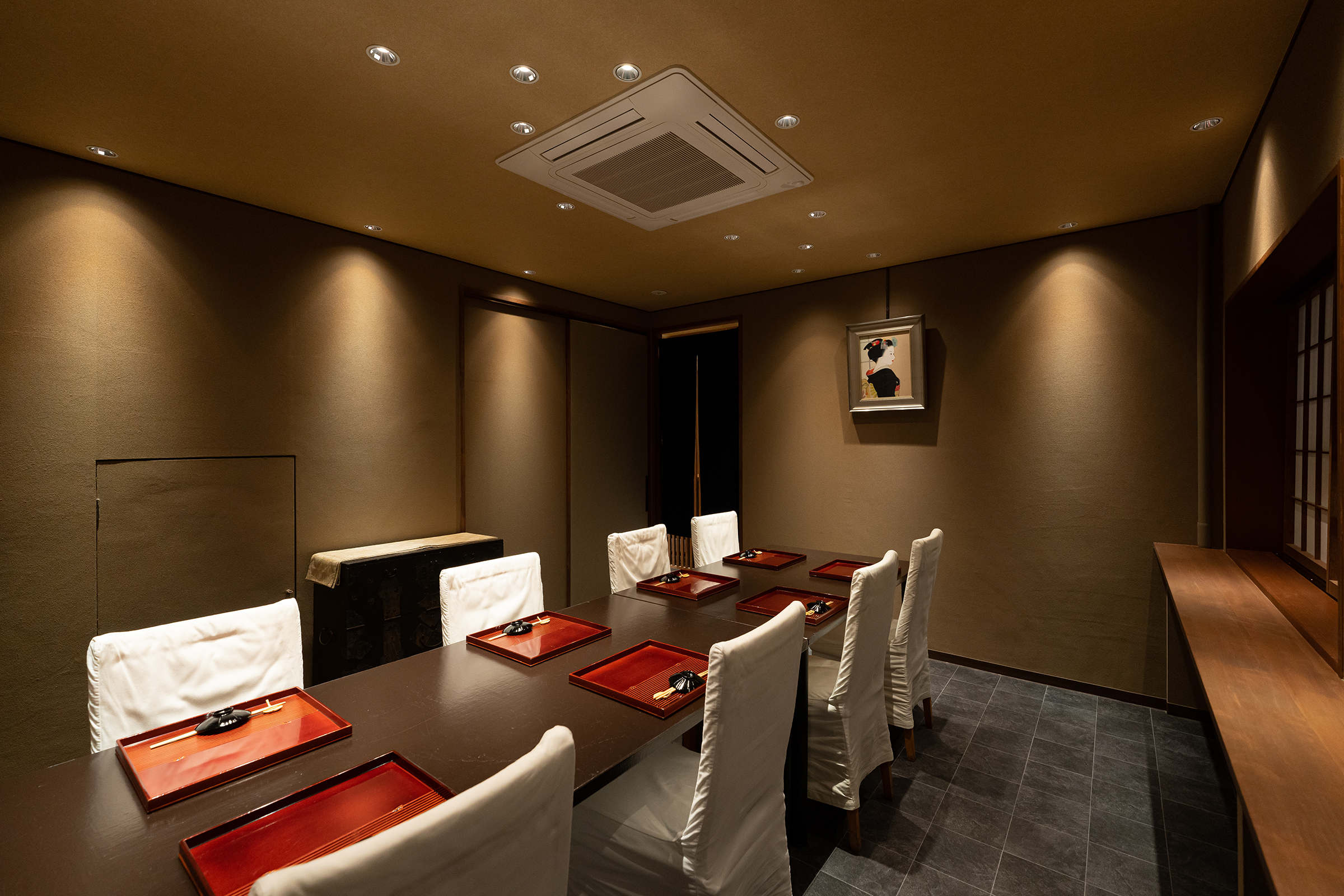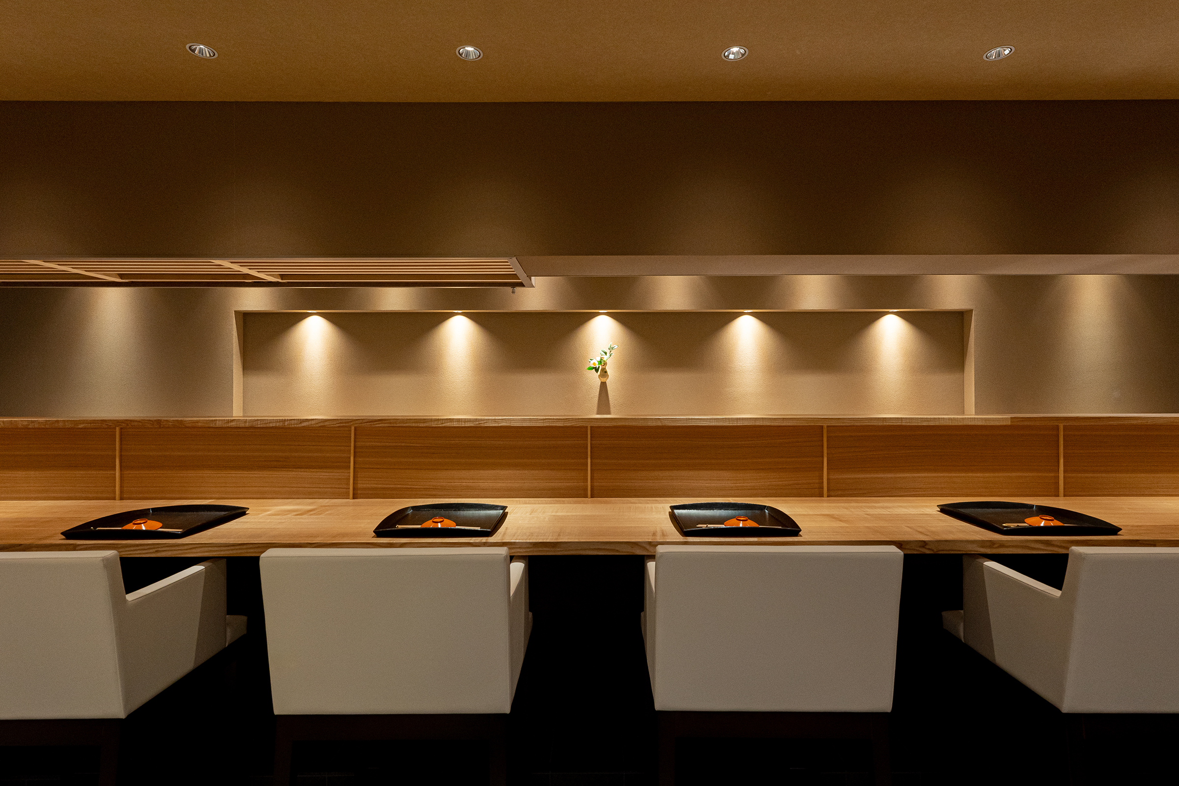カウンター席では、料理人の手仕事が一つの演出として立ち上がり、 個室には、上質なもてなしにふさわしい凛とした気配が漂う。
