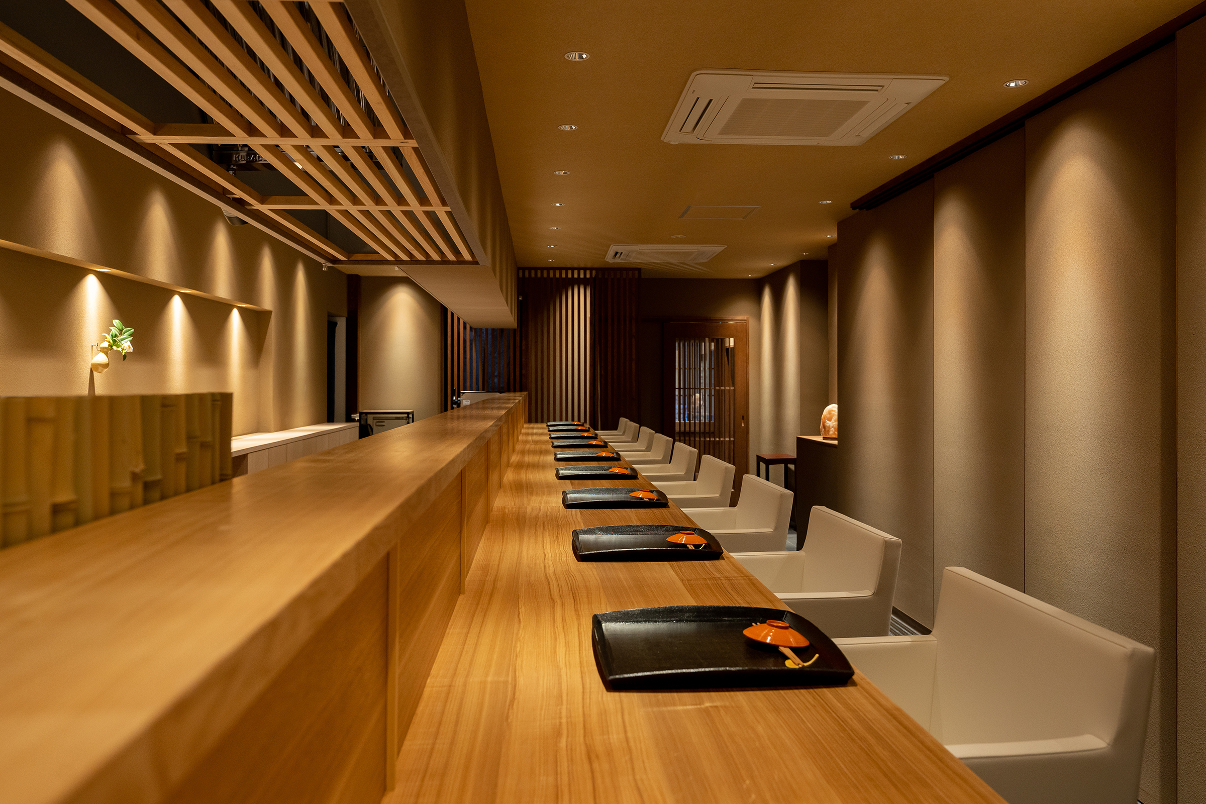 「出汁の基本を外さず、素材を味わってもらう」。 その精神を空間で受け止めるように、設計は“料理の余韻を包み込む場”をテーマに構成。