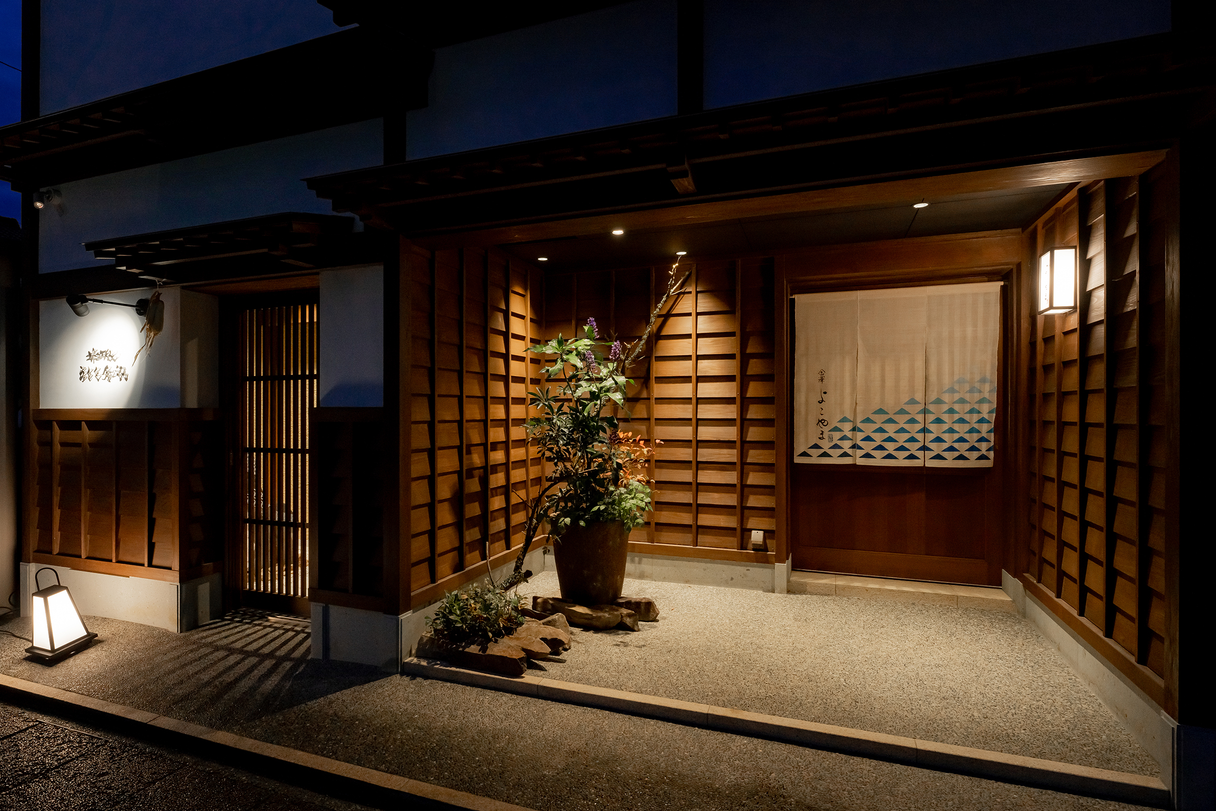 古都の風情が息づく静かな通りに佇む割烹「金澤よこやま」は、 京都と金沢の文化を融合させた和の美意識を、現代的な設えで表現した一軒。
